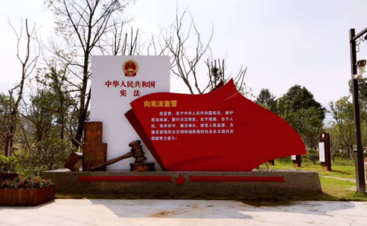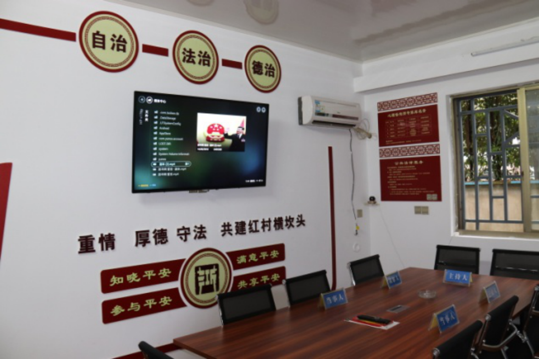 该村民主法治氛围浓厚,具备丰富的法治宣传元素。2018年将农民广场改建成宪法主题园,内有宪法宣誓墙、法治宣传窗以及习近平总书记关于宪法的十条重要论述。在红色主题公园内设有党章宣誓墙、党员公约、道德评议墙、村规民约和村民议事亭,体现了自治、德治、法治的高度融合。在村委会还专门设立了“三治融合室”、村民说事室、综合信息指挥室、法律图书角,并在便民服务中心设置了公共法律服务点。2019年横坎头村新时代文明实践站一期建成,特在展馆内增设社会治理版块专门记录红村法治宣传的精彩瞬间,悬挂省级民主法治村牌匾,描绘民主法治创建时间线,张贴体现红村底蕴的村规民约。另外在大会报告厅循环播放法治宣传短片、电子横幅,参观人员络绎不绝。